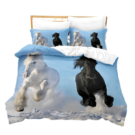 Animal Horse Pattern 3-piece Quilt Cover Set Coral Fleece Home Textile