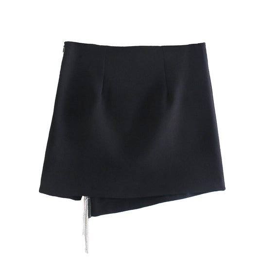 Early Spring New Artificial Gemstone Fringed Mini Skirt, Hip Skirt