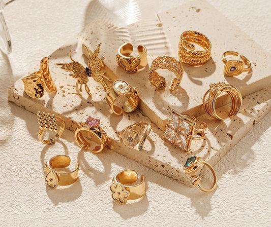 Asymmetric Design Personalized Glossy Open Ring Copper Plating 18K Real Gold Design Vintage