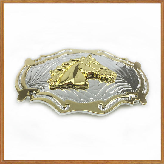 Tang Grass Pattern Horse Head Western Bus Leather Carving Belt Buckle Locomotive Fashion Belt